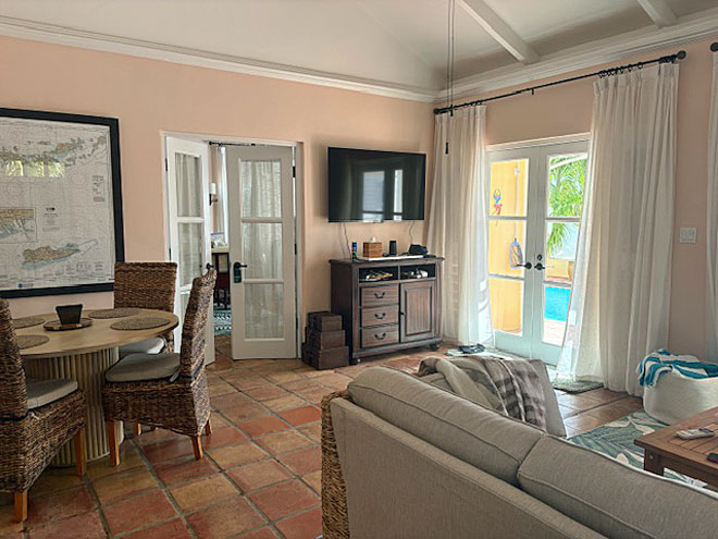 Features include 55" Smart TV, Wireless Internet, all inside villa amenities including complete air conditioning ,french door openings to enjoy the view and breezes, plus extra touches around the villa. Off the living room is the fully equipped new enlarged redone kitchen.
