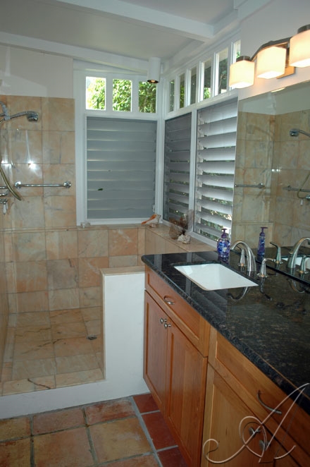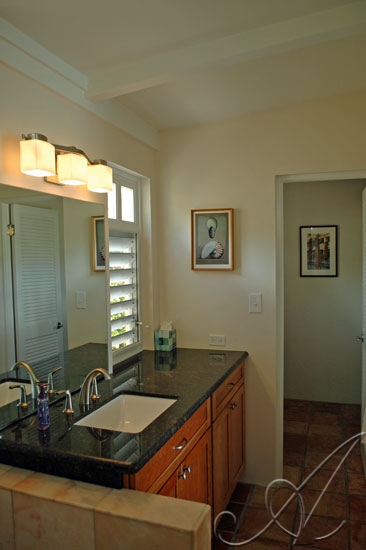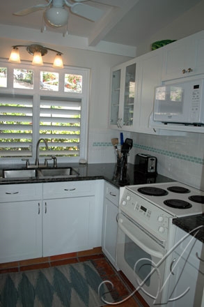 The kitchen is fully accessorized including a ceiling fan here too and features new modern cabinets and granite counter tops to enjoy your time cooking for your stay at home nights. A special feature of this villa is the UV water purification system making the water from the tap safe to drink and there's no need to buy bottled water for your stay.