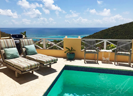 One Love - This 2 bedroom/2 bath villa with it's pleasing outdoor area, and sweeping top level view is a fun choice for comfort and privacy. This villa with it's private pool area is another gracious Villa Madeleine choice offering it's love of the island.